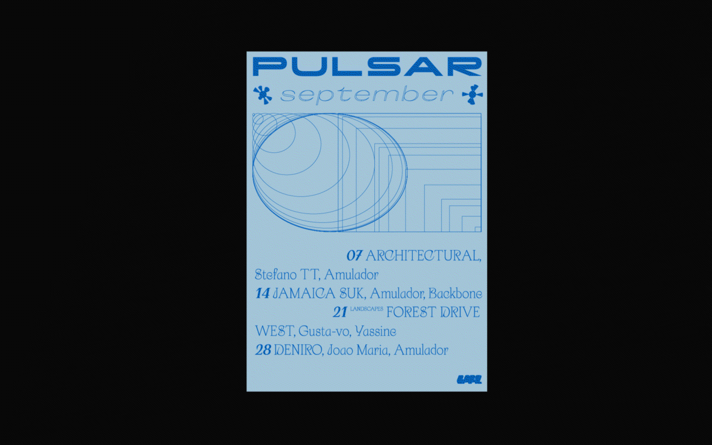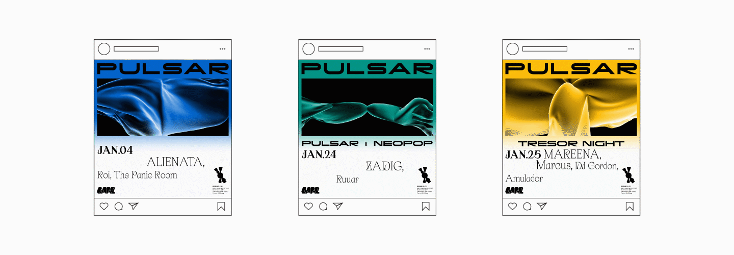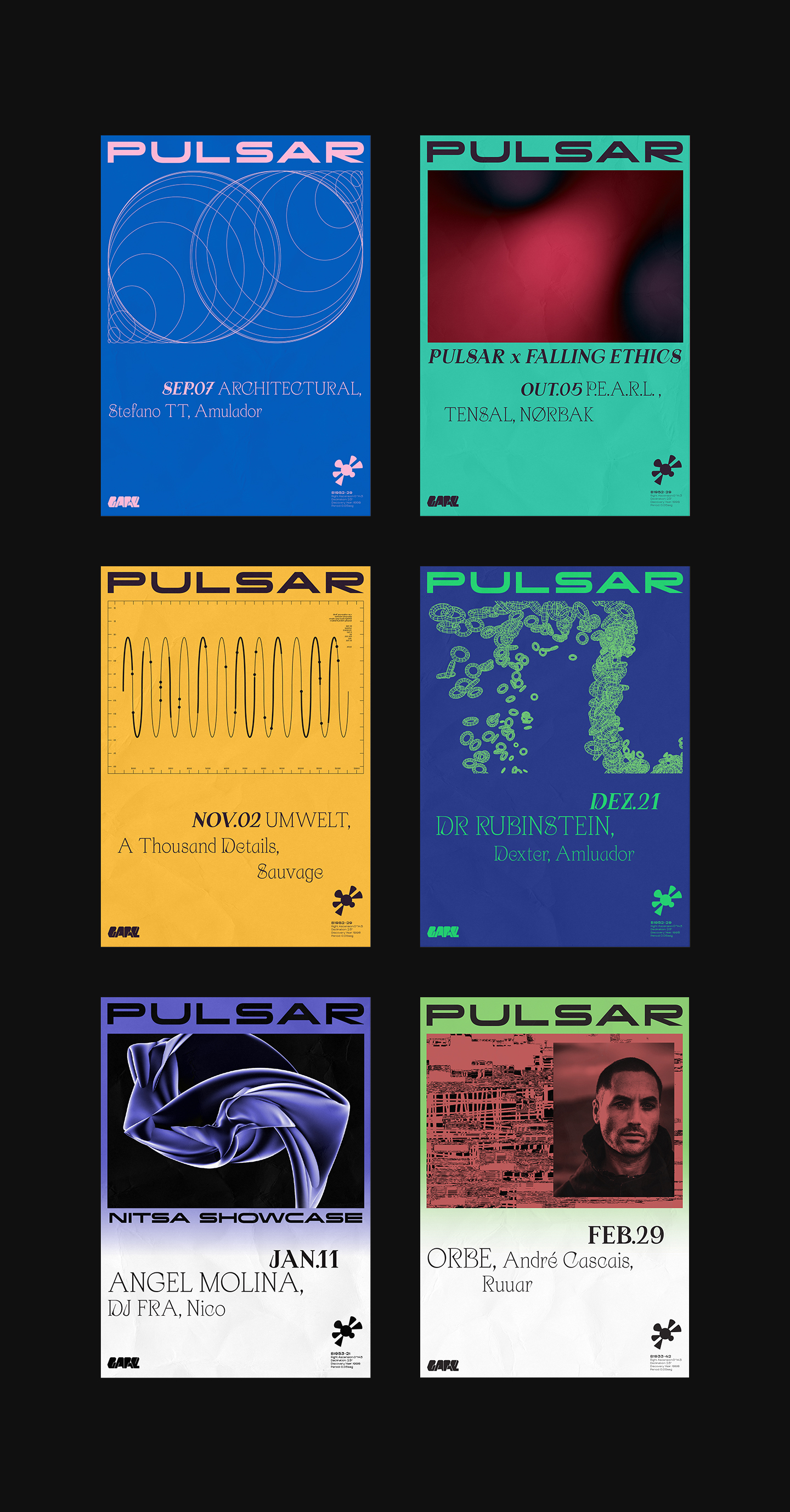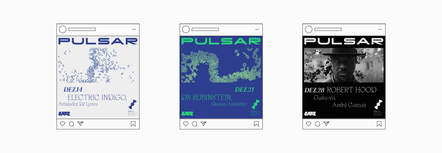 'Pulsar' is the crushed core of an exploded star (supernova). a source of radioelectric radiation, luminous, x or gamma, whose emissions are very short and reproduce at extremely regular intervals. We want to bring a journey from space into the tunnel, which illustrates this element, its characteristics and positioning. Our proposal provides for a graphic exploration that differs every month, illustrating different pulses with different interpretations.